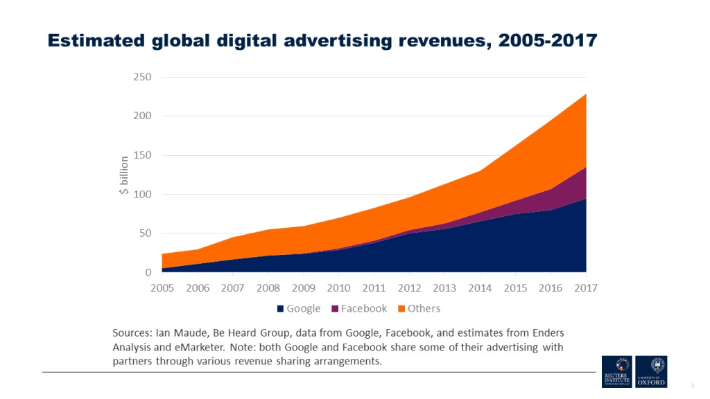 [vii] Fletcher, Richard, and Rasmus Kleis Nielsen. 2017. “Navigating News on Social Media: A Four-Country Mixed-Methods Analysis.” Paper presented at the American Political Science Association Annual Meeting in San Francisco, and Kalogeropoulos, Antonis, and Nic Newman. 2017. “‘I Saw the News on Facebook’: Brand Attribution When Accessing News from Distributed Environments.” Oxford: Reuters Institute for the Study of Journalism.