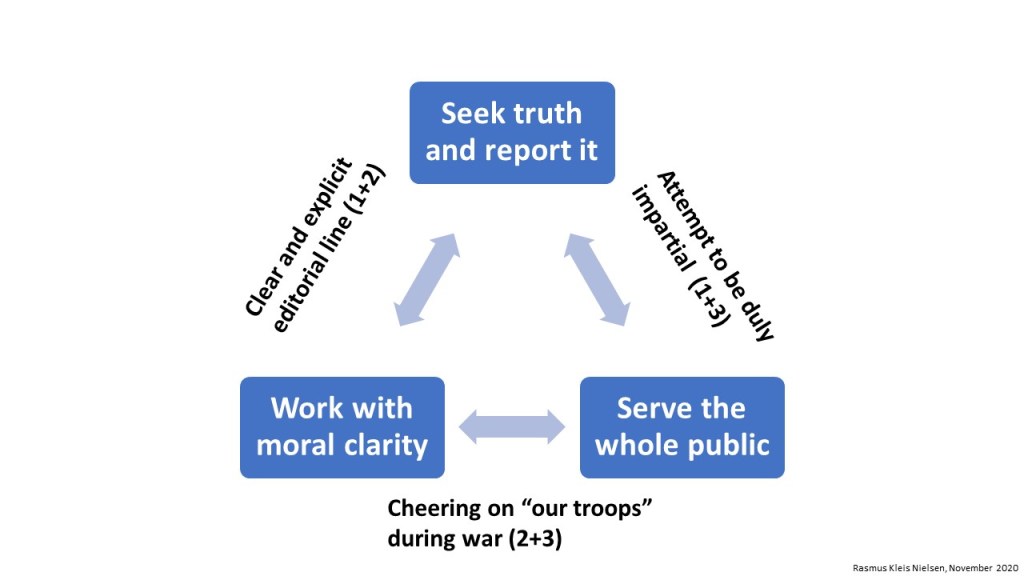 How do we face this challenge? I don’t know. And even if I was arrogant enough to think I did, I’d have no right to tell journalists, editors, media executives (or anybody else really) how to do their jobs. Instead, what I try to do is to work with my colleagues to offer journalists and news leaders opportunities for discussing their challenges with peers, connect them with other interesting people, and provide independent, evidence-based relevant research, so that they can develop the responses they think are right for each of them, on the basis of their aspirations, their context, and their values.