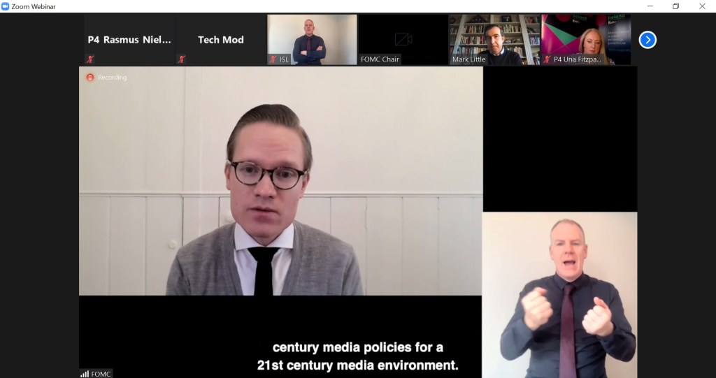 Remarks at the Irish Future of Media Commission dialogue Friday 19 March on media funding and regulation.