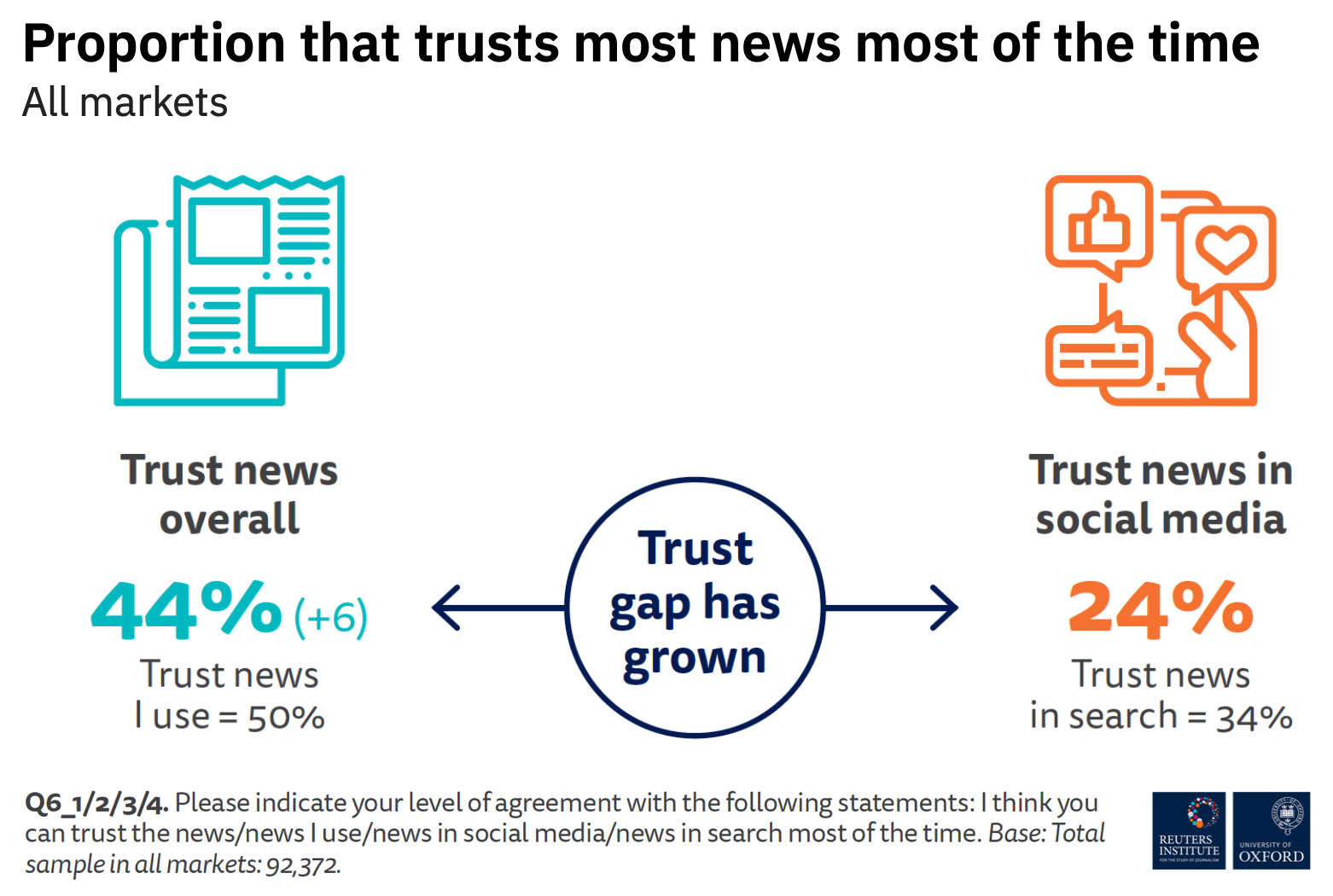 And despite trust gap and concerns over misinformation, various platforms continue to grow in importance for news discovery.