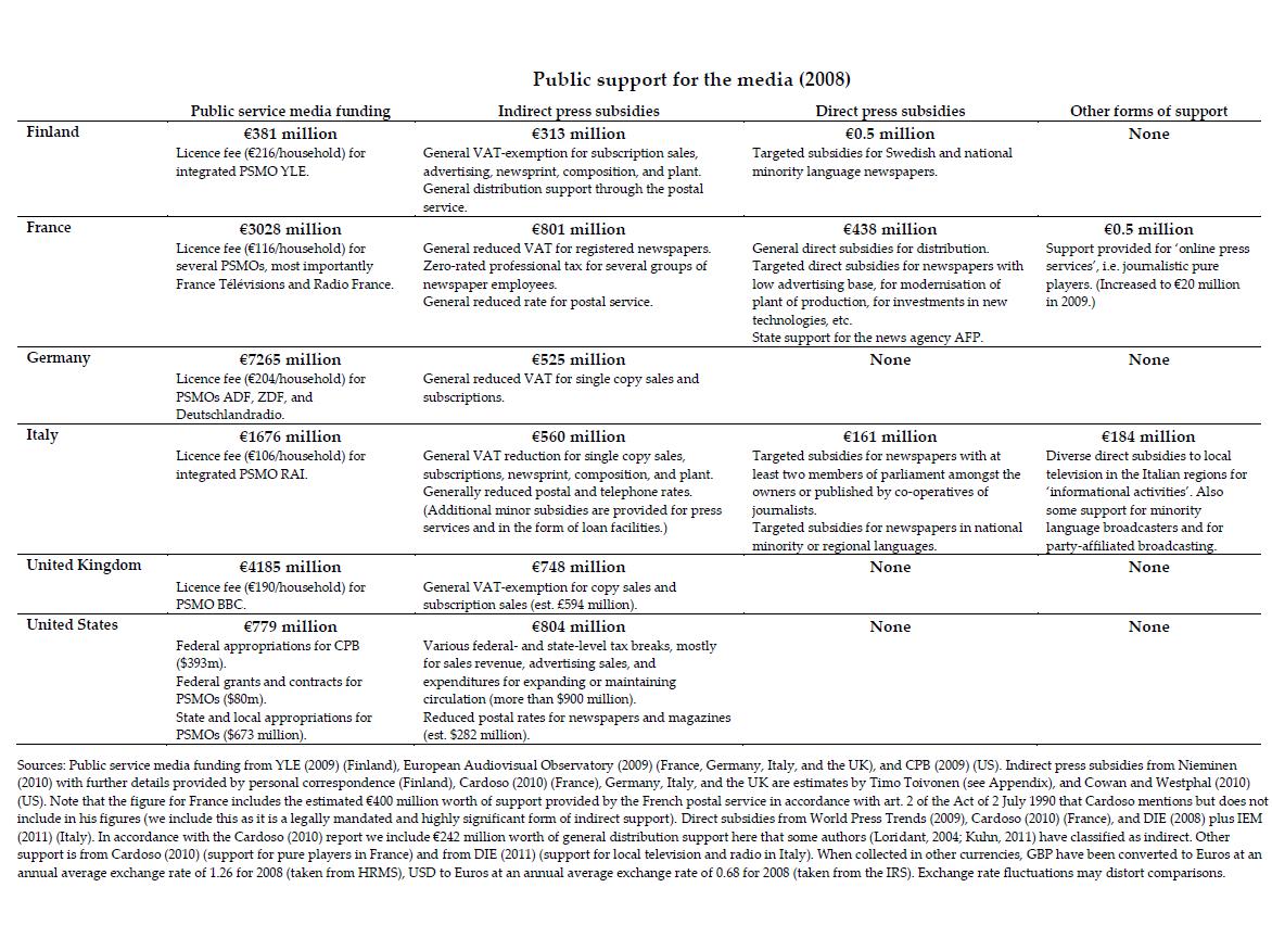 Supporting private sector news media through indirect forms of support such as tax exemptions, direct support specifically tied to investment in professional journalism and structured to prioritize local media and media serving minorities, and supporting innovation, without tying these forms of support to increasingly marginal forms of distribution like print, is one option, as demonstrated in Denmark.
